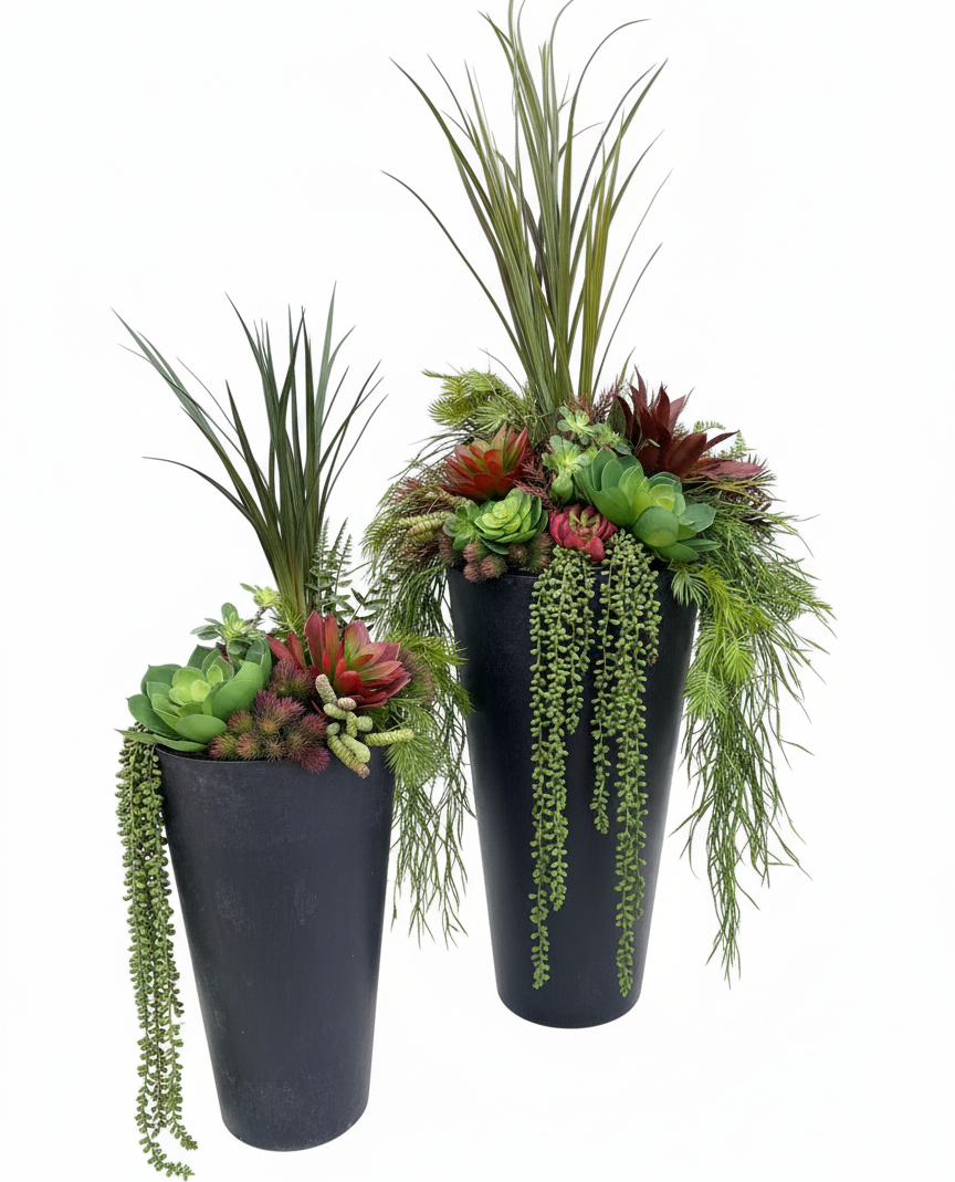 🌺 Set of 2 Tropical Planter Inserts – Faux Succulents & Bold Color Bring a...