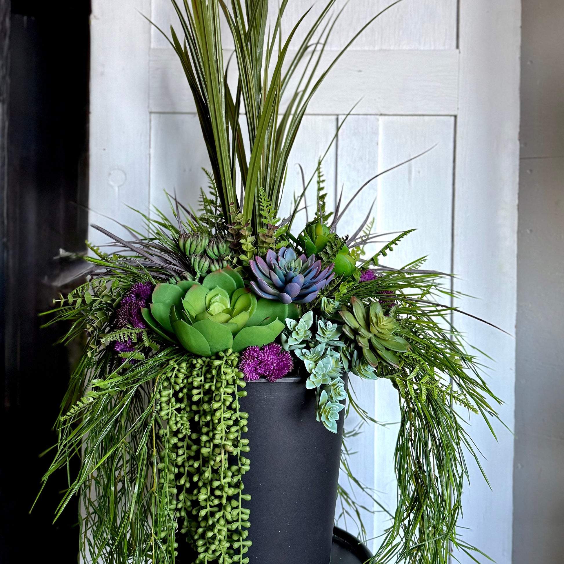 Each arrangement features high-quality faux succulents in soft purple and green tones.