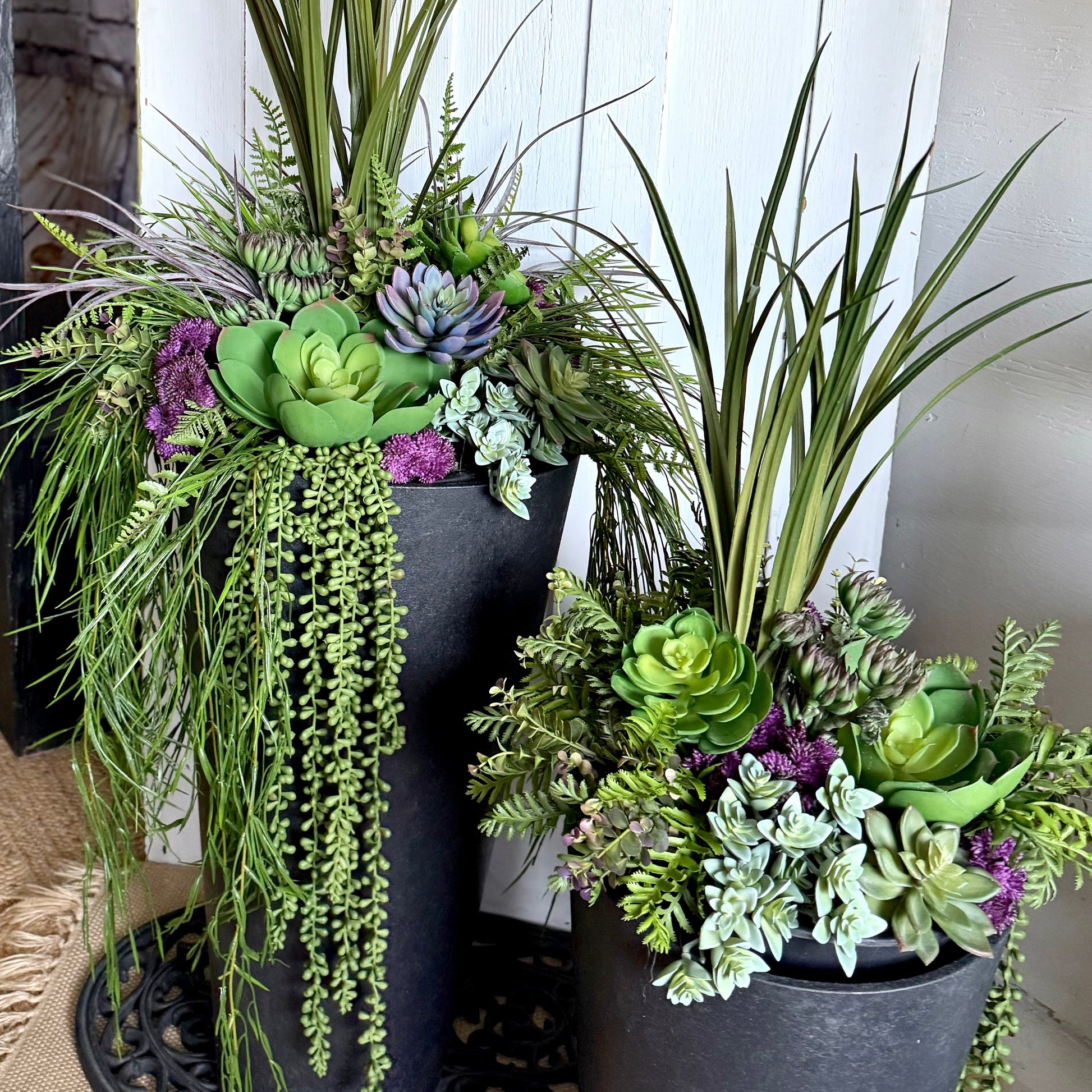 Add lasting beauty to your porch, entryway, or indoor space with this set of two lifelike succulent inserts. 💜
