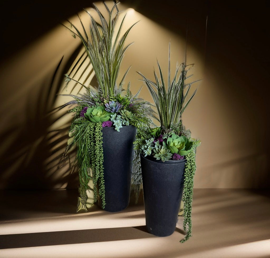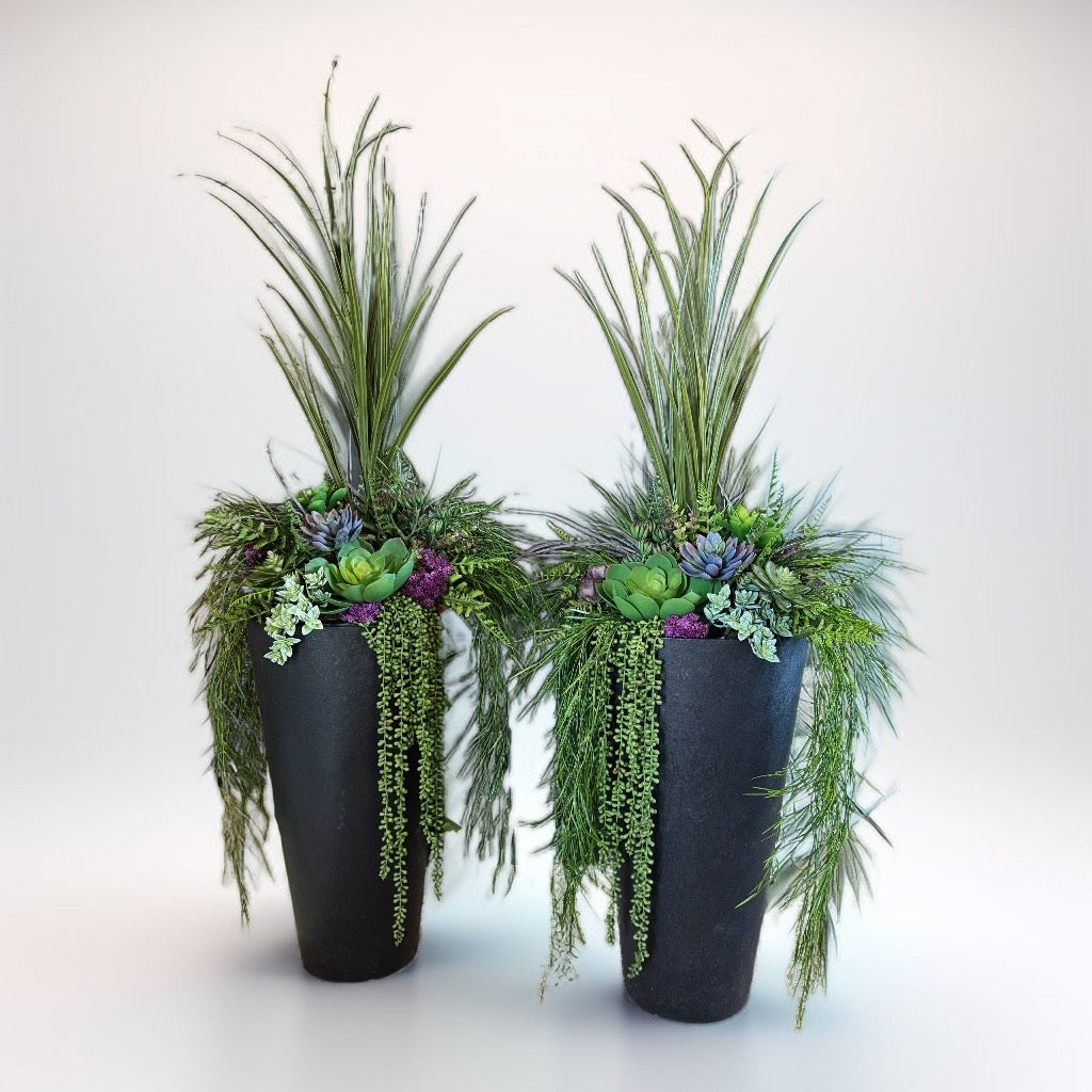 Introduce a touch of greenery to your space with our Faux Succulent Drop In Planter. Measuring 30" high by 20" wide, this arrangement is perfect for home, office, or commercial spaces. Made to drop into your own planter and requiring no maintenance, it features a mix of green and purple artificial succulents for a realistic touch.