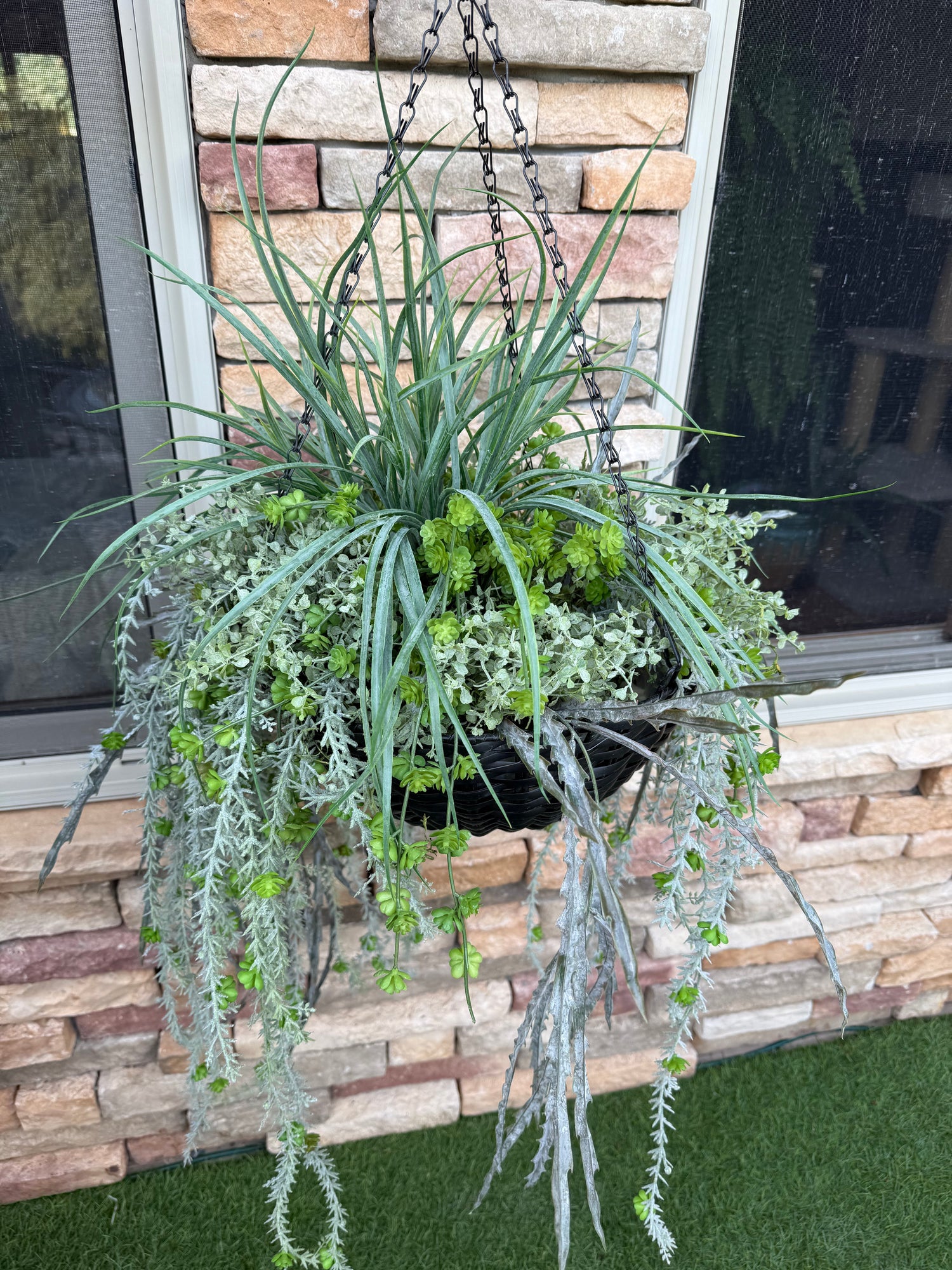 🌿 Lifelike Texture & Color: A lush mix of faux succulents and grasses, carefully arranged for a full, natural look