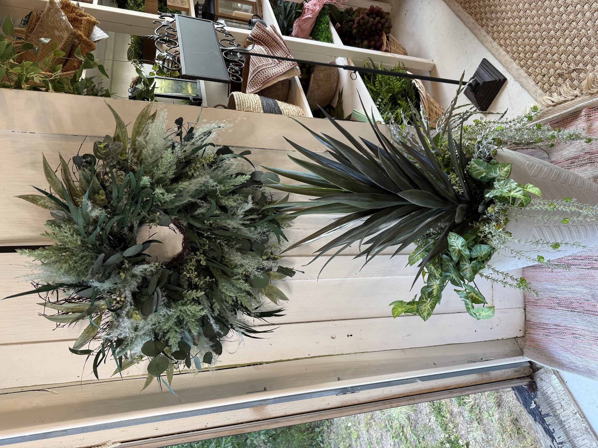 This 28" artificial wreath features a stunning combination of blue, teal, and green faux and real pampas and dried flowers. It is also made with real preserved willow and penny eucalyptus.Perfect for adding a touch of refreshing color to your decor.
