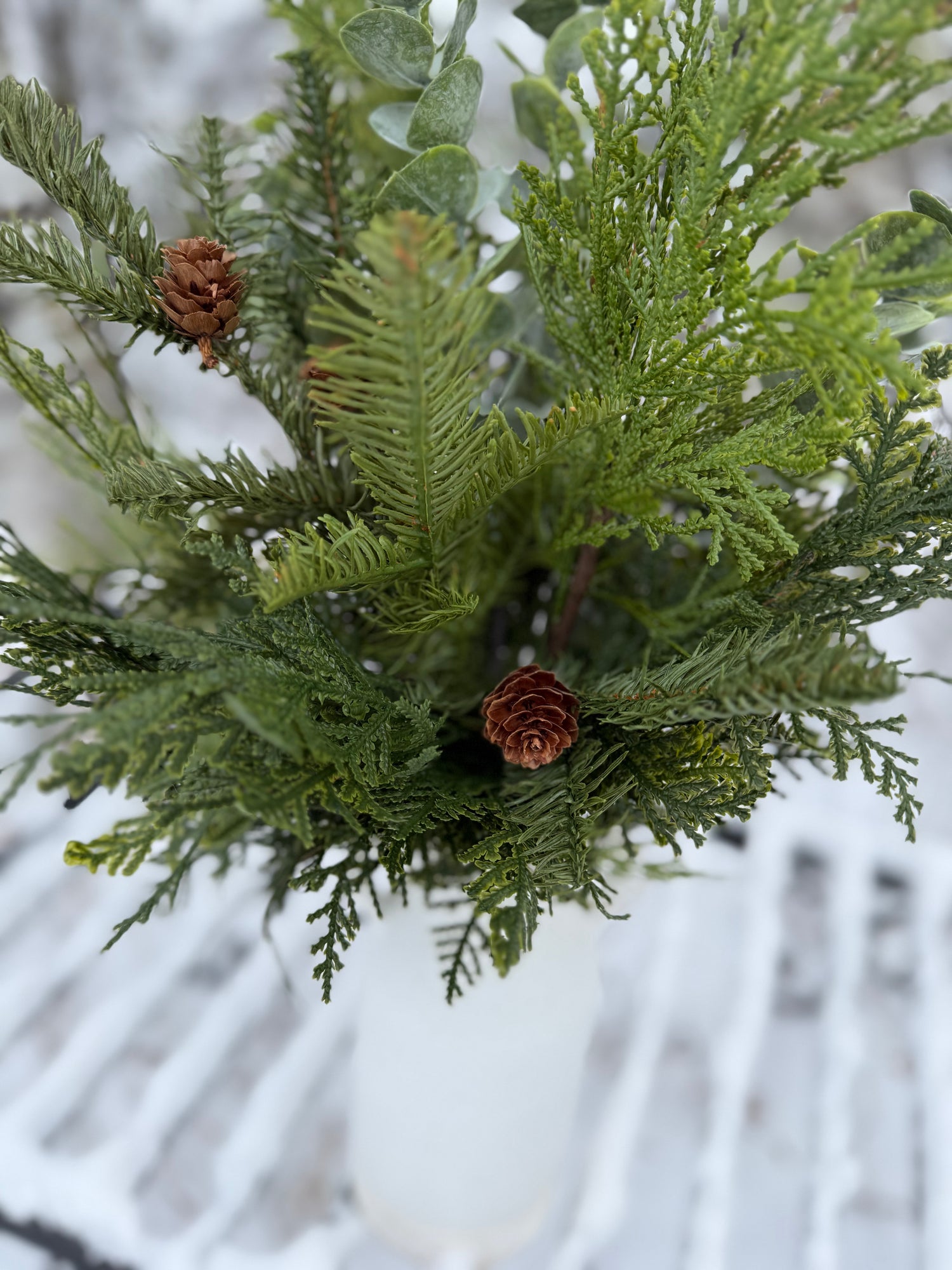 Add a touch of nature to your home decor with our Winter Garden Vase Arrangement. Made with a mix of real touch balsam fir and cedar, this artificial arrangement comes in a ceramic vase and stands at 22 inches tall. Bring the beauty of the outdoors inside without the hassle of maintenance.