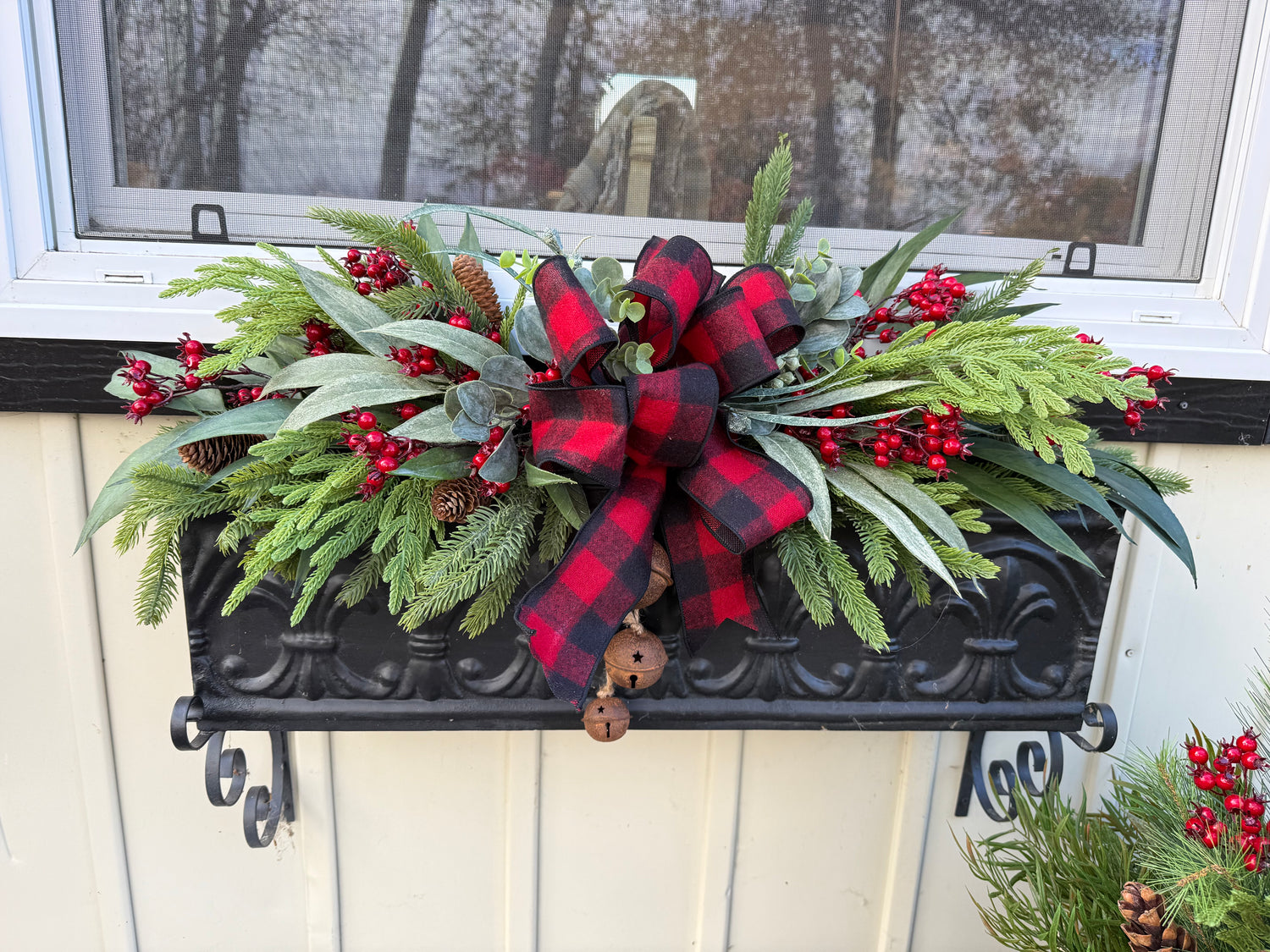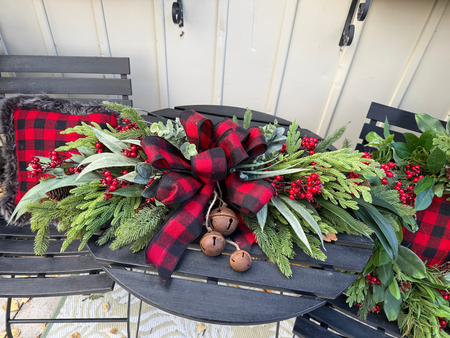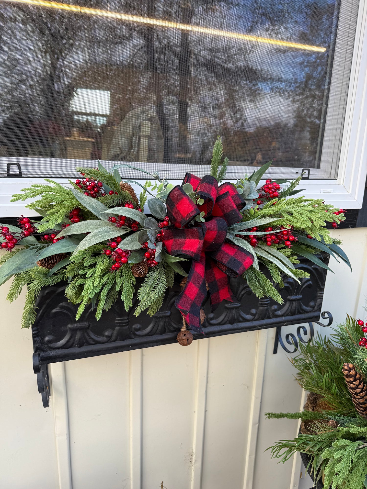 Enhance your winter decor with our Winterberry Swag. Measuring 32”x13”x9”, this versatile swag can be used as a lantern or window decoration. The real touch red berries, spruce, pine, and cones are weather resistant, while the buffalo check adds a charming touch. Perfect for adding a touch of festive cheer to any space.